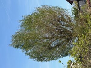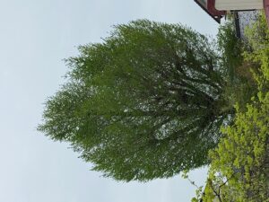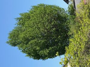 手前の柿も新緑に。